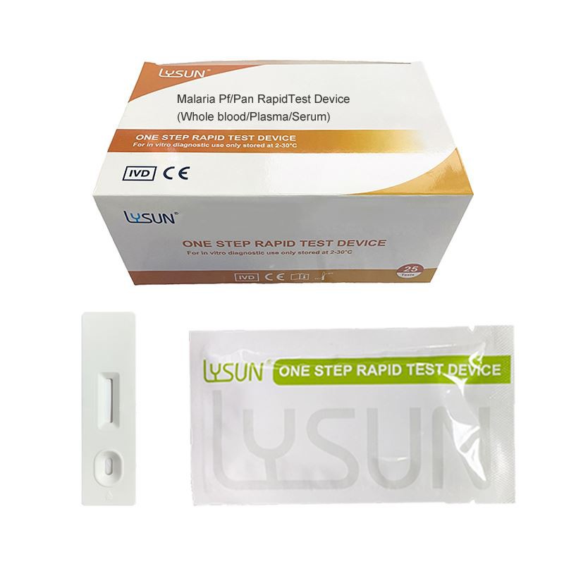 La prueba rápida de autodiagnóstico de malaria Pf/Pan (oro coloidal) es un método de inmunoensayo visual rápido que se utiliza para detectar de forma cualitativa e inferencial los antígenos de malaria Pf/Pan en muestras de sangre. Esta prueba se utiliza para ayudar a identificar rápidamente las infecciones por Plasmodium falciparum y Plasmodium vivax, Plasmodium ovale o Plasmodium. Existen dos métodos para la prueba rápida de autodiagnóstico de malaria Pf/Pan: detección de muestras de sangre completa y plasma sérico.